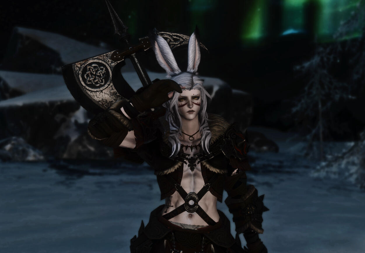 Several turns past, before the lifespan of a hale and hearty Elezen, a viera kit was born atop the Skatay Range. A region on the highest of peaks and foothills betwixt the Burn and the Kingdom of Dalmasca…where only the hardiest of the frost-bound viera survived isolated from the rest of Othard as we know it. Orphaned at a tender age, the kit named Hjálmarr was raised by fellow warders of his tribe. Given the nickname Jari, the kit spent his youth honing his skills and ascend to becoming one of the fierce warders tasked with guarding the perimeter of their sacred land.As a warder—like many of those of his number— Jari had a knack for survival in the gelid desolace nestled in the misty clouds. He was one of the most notable male trackers in his tribe. Jari was known for his solitary tendencies among the Viera younglings. Oft, he would prefer solitude, tracking game through the dense evergreen forests and scaling the steep cliffs of the Skatay Range. Poems and stories state that he could communicate with the wolves there. Of the many wolves that he had befriended— two wolves, namely Baldr and Skadi, who were mates and accompanied him on many forays through the seaons.As Jari grew older, his reputation as a lone wolf only grew. He became known as "Ulvesangen," the song of wolves, for his ability to mimic the haunting howls of the wolves he encountered. He became a feared and respected figure among his tribe, and many young Veena aspired to follow in his footsteps. Despite his reputation for being a solitary figure, the snowy Viera Warder was deeply in love with a particular woman in his tribe.Swan-white, bearing a shield of gold, a bannered spear in hand— this woman was a skilled huntress. The Warder and his interest crossed paths beyond the three to five summers the warders would revisit the village. Jari was drawn to her fierce independence and her ability to spar with him with effortless ease. They spent many long suns together, tracking game through the forests and sharing songs and stories by firelight. He enjoyed singing to her and she seemed to look forward to their clandestine meetings.How abundantly clear it was that they were two halves of a whole! The hum of their voices and song harmonized seamlessly with the Green. Their love for each other was not unknown—winter, stars, the trees, and the pallid moon in the skies bore witness to their union. However, a rare bitterness became increasingly apparent among the pines…the elders of the tribe promised the veena woman man, seeking alliance with a neighboring tribe.Despite this revelation, he remained by her side. Jari would keep his distance, continuing to roam the Skatay Range alone, his reputation as a skilled defender and tracker growing with each passing turn. But despite his accomplishments, he continued to love her. He would care for her from afar, always keeping her safety and well-being in his thoughts.Be it by the grand hand of Fate or divine intervention, the man to whom she had been promised was killed a stone's throw away from the tribe's perimeter. The woman was skilled in hunting and in tune with the Mist. But there was something awry about the magick that surrounded her just then. The elders ordered her capture but she escaped into the wilds.The snowy Viera pursued her through toward the foothills only to find himself and the woman in tow captured by Garleans. Just as the warder and his female compatriot had reunited, they were soon torn apart: Jari was sent to Ala Mhigo to make up for dwindling numbers. There, he would endure many horrors, much discrimination, and hardship. Axe ripped from calloused hands and cast into the depths of the Ruby Sea, Jari would then be forced to don a more ‘civilized’ weapon: the Garlean gunblade.After much discreet planning, Jari assisted Eorzean forces to stage a coup before he was sent to Doma. There, he made a name for himself by doing odd jobs and playing his unique music at obscure venues for the elite, hiding as a civilian among the vipers of the Garlean Empire. Though he was talented, his musical persona was always meant to be a farce: acting as both a sellsword and a double agent. Jari despised his captors, but he would remain with them until he knew the whereabouts of his lost love. Skilled and intuitive, he was quick to find promising leads. Alas, those were impossible to pursue without being discharged - but to be discharged under his circumstances meant only one thing: death. This is when the erstwhile warder staged his premature demise to fight for his freedom and of those that they oppressed indiscriminately.After the Garleans saw their ultimate downfall, Jari stayed there to aid locals who facilitated his escape....those of not-so-noble occupation to whom he owed a great debt. He was all but shackled before he found further fame and paid off his owed sum in Gil. Fame begat infamy, and so Jari found his career in music. For a time, the Viera let fade his desire to search for her... He was afforded countless luxuries and showered with love from adoring fans and grew to become a household name.To onlookers, Jari had it all—but there was trouble brewing in paradise: no amount of Gil, beautiful women, or dalliances could erase glimpses of her countenance, silence her voice, or muddy her song from memory. The clues to her whereabouts lead to dead ends. Having left no stone unturned, it struck him then to write about her and sing of his time spent with her. Sing about the circumstances of their separation. Hoping that it would reach the pair of ears he so earnestly sought to recount his stories to once more.