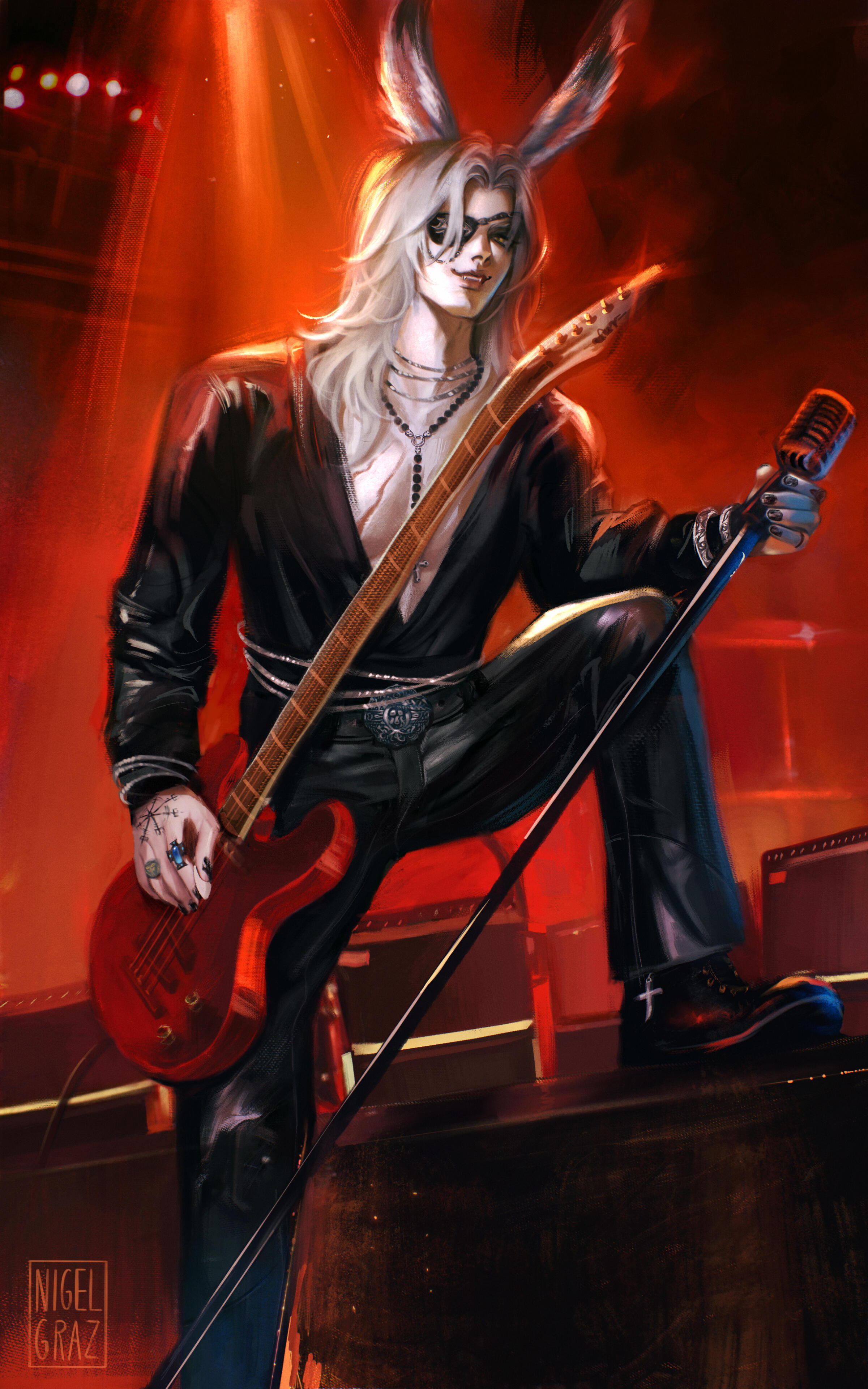 Several turns past, before the lifespan of a hale and hearty Elezen, a viera kit was born atop the Skatay Range. A region on the highest of peaks and foothills betwixt the Burn and the Kingdom of Dalmasca…where only the hardiest of the frost-bound viera survived isolated from the rest of Othard as we know it. Orphaned at a tender age, the kit named Hjálmarr was raised by fellow warders of his tribe. Given the nickname Jari, the kit spent his youth honing his skills and ascend to becoming one of the fierce warders tasked with guarding the perimeter of their sacred land.As a warder—like many of those of his number— Jari had a knack for survival in the gelid desolace nestled in the misty clouds. He was one of the most notable male trackers in his tribe. Jari was known for his solitary tendencies among the Viera younglings. Oft, he would prefer solitude, tracking game through the dense evergreen forests and scaling the steep cliffs of the Skatay Range. Poems and stories state that he could communicate with the wolves there. Of the many wolves that he had befriended— two wolves, namely Baldr and Skadi, who were mates and accompanied him on many forays through the seaons.As Jari grew older, his reputation as a lone wolf only grew. He became known as "Ulvesangen," the song of wolves, for his ability to mimic the haunting howls of the wolves he encountered. He became a feared and respected figure among his tribe, and many young Veena aspired to follow in his footsteps. Despite his reputation for being a solitary figure, the snowy Viera Warder was deeply in love with a particular woman in his tribe.Swan-white, bearing a shield of gold, a bannered spear in hand— this woman was a skilled huntress. The Warder and his interest crossed paths beyond the three to five summers the warders would revisit the village. Jari was drawn to her fierce independence and her ability to spar with him with effortless ease. They spent many long suns together, tracking game through the forests and sharing songs and stories by firelight. He enjoyed singing to her and she seemed to look forward to their clandestine meetings.How abundantly clear it was that they were two halves of a whole! The hum of their voices and song harmonized seamlessly with the Green. Their love for each other was not unknown—winter, stars, the trees, and the pallid moon in the skies bore witness to their union. However, a rare bitterness became increasingly apparent among the pines…the elders of the tribe promised the veena woman man, seeking alliance with a neighboring tribe.Despite this revelation, he remained by her side. Jari would keep his distance, continuing to roam the Skatay Range alone, his reputation as a skilled defender and tracker growing with each passing turn. But despite his accomplishments, he continued to love her. He would care for her from afar, always keeping her safety and well-being in his thoughts.Be it by the grand hand of Fate or divine intervention, the man to whom she had been promised was killed a stone's throw away from the tribe's perimeter. The woman was skilled in hunting and in tune with the Mist. But there was something awry about the magick that surrounded her just then. The elders ordered her capture but she escaped into the wilds.The snowy Viera pursued her through toward the foothills only to find himself and the woman in tow captured by Garleans. Just as the warder and his female compatriot had reunited, they were soon torn apart: Jari was sent to Ala Mhigo to make up for dwindling numbers. There, he would endure many horrors, much discrimination, and hardship. Axe ripped from calloused hands and cast into the depths of the Ruby Sea, Jari would then be forced to don a more ‘civilized’ weapon: the Garlean gunblade.After much discreet planning, Jari assisted Eorzean forces to stage a coup before he was sent to Doma. There, he made a name for himself by doing odd jobs and playing his unique music at obscure venues for the elite, hiding as a civilian among the vipers of the Garlean Empire. Though he was talented, his musical persona was always meant to be a farce: acting as both a sellsword and a double agent. Jari despised his captors, but he would remain with them until he knew the whereabouts of his lost love. Skilled and intuitive, he was quick to find promising leads. Alas, those were impossible to pursue without being discharged - but to be discharged under his circumstances meant only one thing: death. This is when the erstwhile warder staged his premature demise to fight for his freedom and of those that they oppressed indiscriminately.After the Garleans saw their ultimate downfall, Jari stayed there to aid locals who facilitated his escape....those of not-so-noble occupation to whom he owed a great debt. He was all but shackled before he found further fame and paid off his owed sum in Gil. Fame begat infamy, and so Jari found his career in music. For a time, the Viera let fade his desire to search for her... He was afforded countless luxuries and showered with love from adoring fans and grew to become a household name.To onlookers, Jari had it all—but there was trouble brewing in paradise: no amount of Gil, beautiful women, or dalliances could erase glimpses of her countenance, silence her voice, or muddy her song from memory. The clues to her whereabouts lead to dead ends. Having left no stone unturned, it struck him then to write about her and sing of his time spent with her. Sing about the circumstances of their separation. Hoping that it would reach the pair of ears he so earnestly sought to recount his stories to once more.